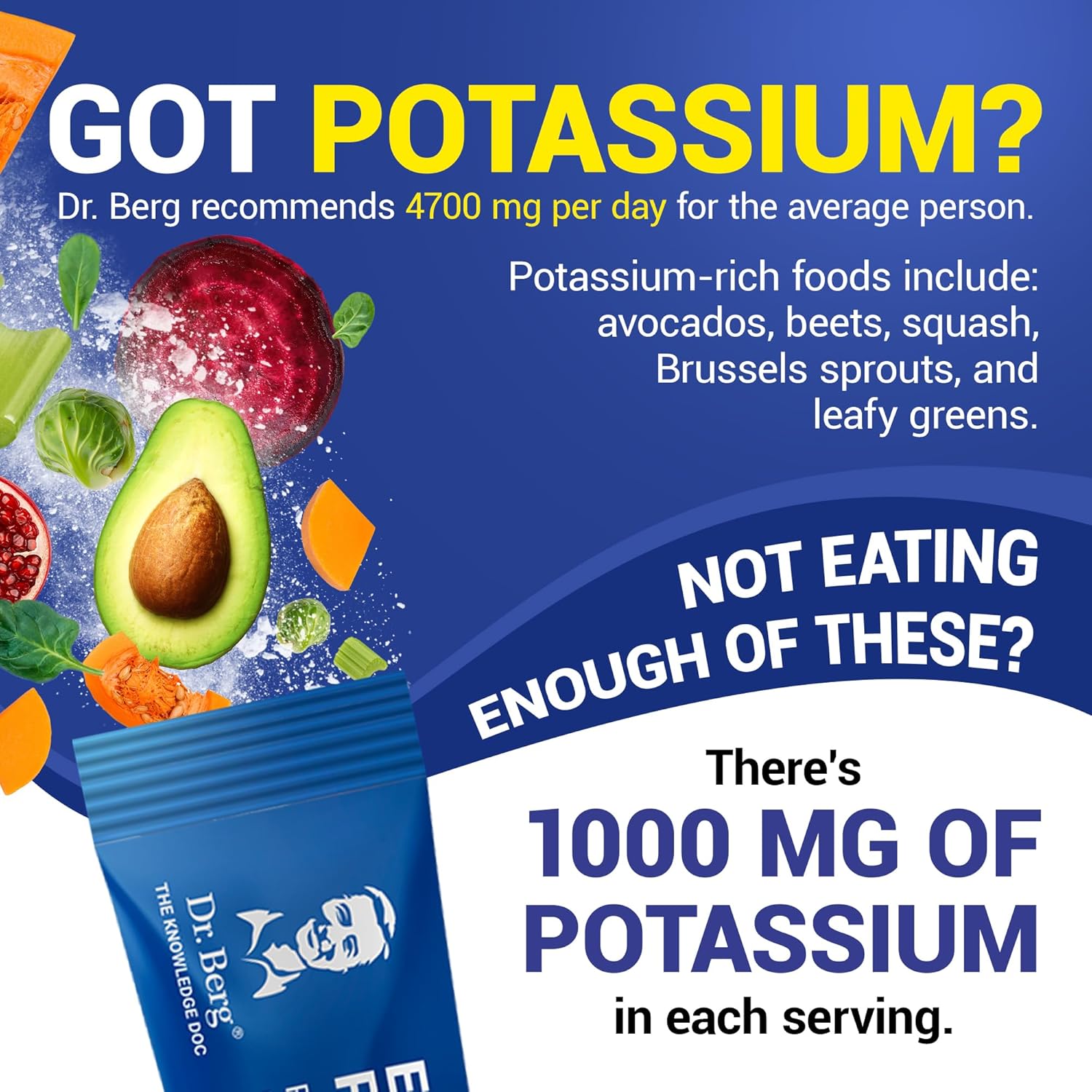 𝟭,𝟬𝟬𝟬𝗺𝗴 𝗣𝗢𝗧𝗔𝗦𝗦𝗜𝗨𝗠 – Why so much potassium in this electrolyte mix? Potassium comes from some of the healthiest foods on the planet including leafy greens, vegetables, fruits and more. The daily recommended amount is 4,700mg per day. That’s a lot, which is the reason Dr. Berg created this hydration powder with 1,000mg of potassium. Are you getting enough potassium?