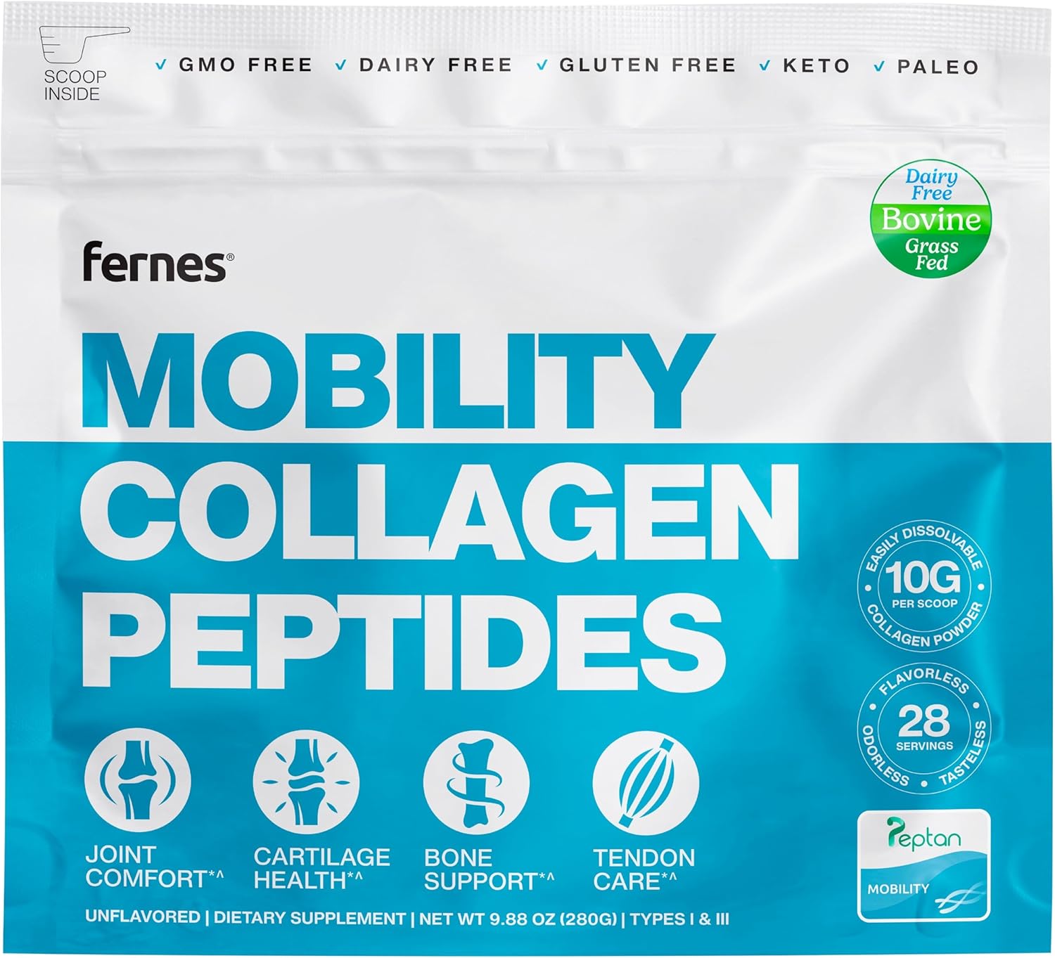 Mobility Boost: Fernes Collagen delivers 10g of Peptan bioactive collagen peptides per serving, designed to enhance joint comfort, bone support,cartilage and tendon care. A scientifically backed supplement that aids in mobility, supporting your active lifestyle.*