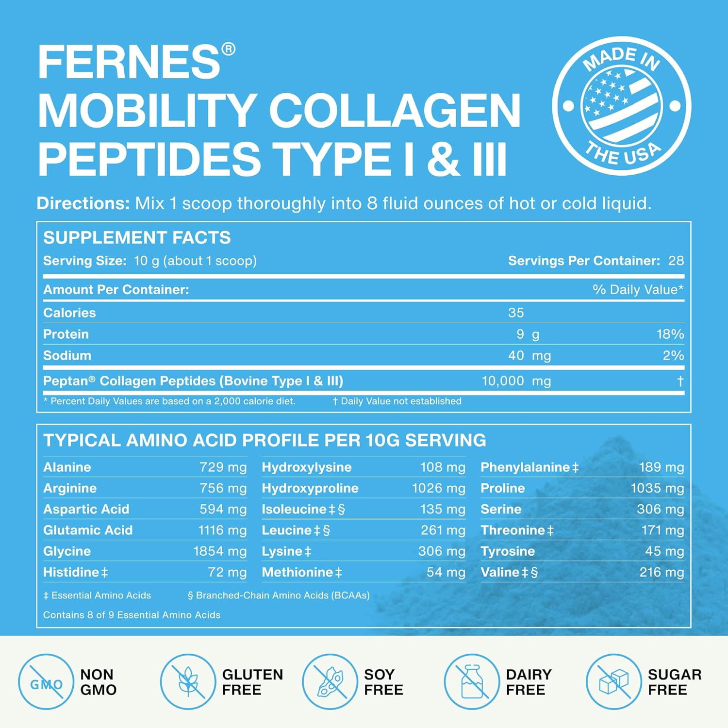 Hydrolyzed Collagen Peptides: For the best results, you need the cleanest ingredients. Fernes uses pure hydrolyzed peptides from bovine source certified as grass-fed and pasture-raised.