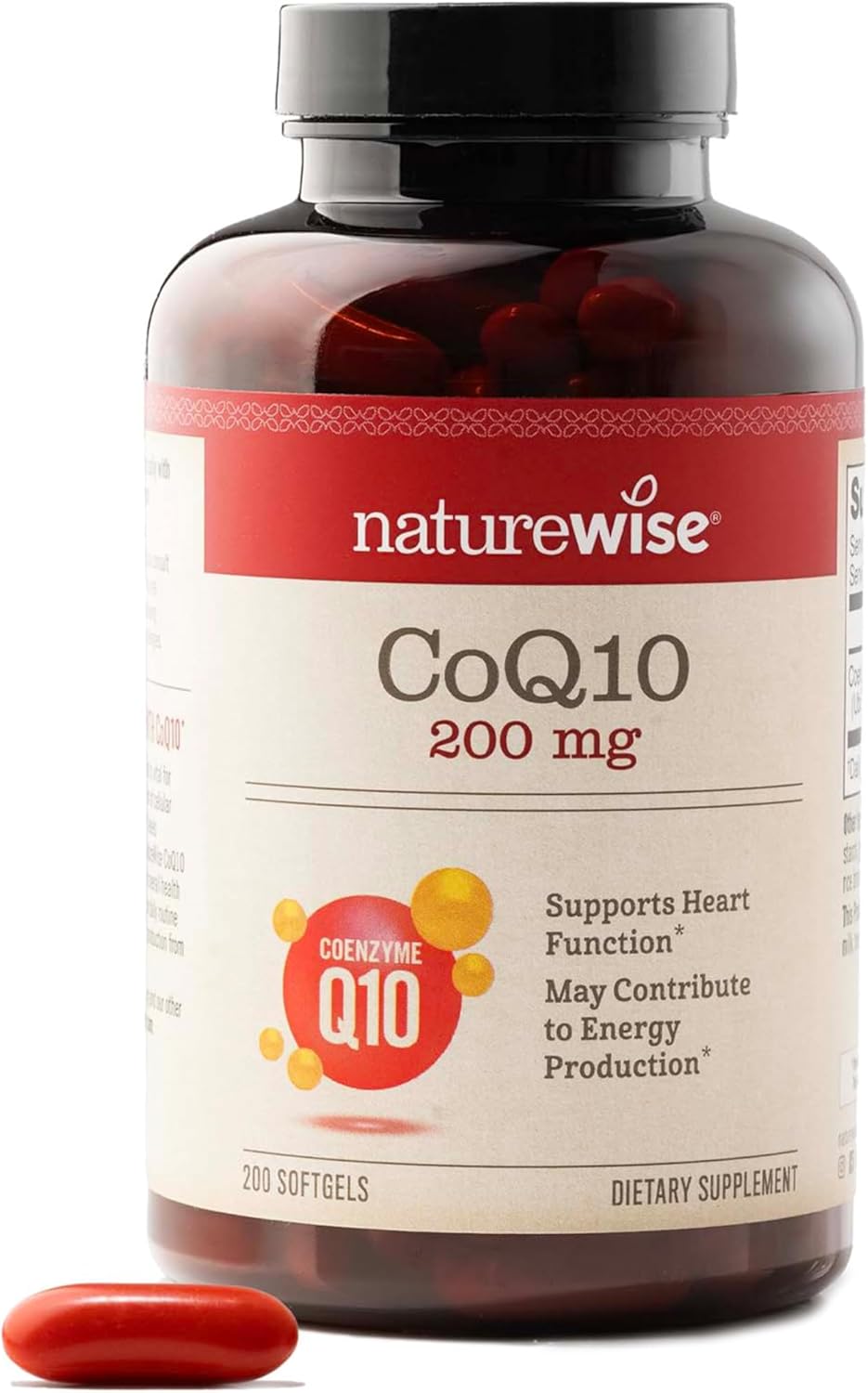 CoQ10 or coenzyme Q10 is a molecule that is naturally produced in the body’s cells. CoQ10 can also be obtained through a diet of meats, nuts, and fish. CoQ10 production often decreases as we age, which makes it harder for our bodies to convert food into energy efficiently. It is most important as a cofactor for mitochondrial enzyme complexes involved in the production of cellular energy. CoQ10 also brings a wealth of benefits for your heart health, immune system, and energy levels.* NatureWise CoQ10 200mg Softgels offer a high-potency, high-quality CoQ10 supplement that supports energy production, heart health, and overall well-being. Our softgels feature ubiquinone, an oxidized form of the CoQ10 molecule. This oxidized version of CoQ10 is in great demand in the mitochondria to produce cellular energy. We made our CoQ10 supplement vegan and gluten-free with non-GMO ingredients, making it a reliable choice for those looking to support their daily health.* By incorporating NatureWise CoQ10 into your daily routine, you can support your heart and replenish your CoQ10 levels. NatureWise CoQ10 200mg Softgels provide a boost for your energy levels or support for your cardiovascular system. NatureWise NatureWise CoQ10 200mg Softgels do not contain wheat, gluten, eggs, soy, milk, tree nuts, peanuts, fish, shellfish or sesame. *Statements regarding dietary supplements have not been evaluated by the FDA and are not intended to diagnose, treat, cure, or prevent any disease or health condition.